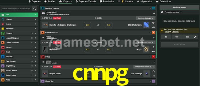 O cnnpg oferece uma grande seleção de opções de apostas em e-sports com probabilidades competitivas